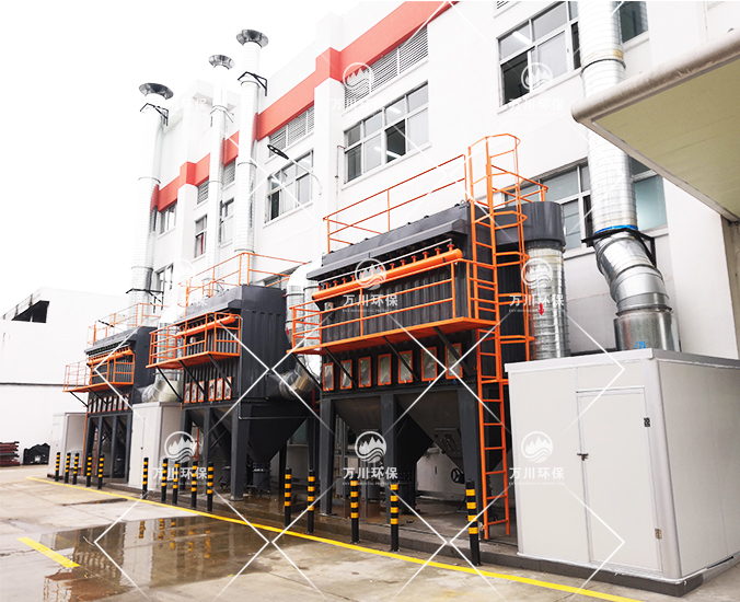 這種設(shè)備主要用于多個(gè)打磨拋光工位集中除塵,在拋光打磨點(diǎn)頂部或者側(cè)方加裝吸風(fēng)罩,通過風(fēng)機(jī)風(fēng)量,把粉塵通過管路吸塵集中式布袋除塵器中,然后通過除塵布袋過濾粉塵,然后潔凈空氣通過15米煙囪高空排放,繼而達(dá)到環(huán)評(píng)排放標(biāo)準(zhǔn)。