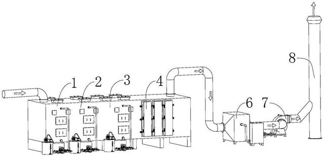 印刷廢氣處理工藝流程:印刷廢氣風(fēng)管收集→引風(fēng)機(jī)→活性炭箱吸附/脫附→高溫爐燃燒→排氣達(dá)標(biāo)高空排放