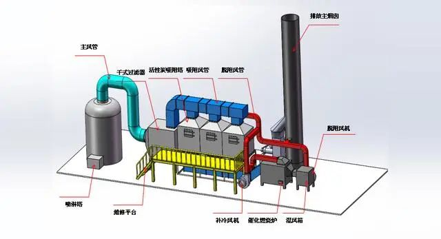 汽車廠有哪些廢氣處理設(shè)備,針對汽車涂裝車間產(chǎn)品產(chǎn)生的廢氣,汽車涂裝生產(chǎn)線的廢氣濃度普遍偏高,對于偏高濃度的廢氣可以考慮以下幾種技術(shù)進(jìn)行解決: 1.預(yù)處理+活性炭吸脫附+催化燃燒(單次投入較小,但長期維護(hù)成本略高) 2.預(yù)處理+蓄熱式焚燒爐(RT0)工藝(單次投入較大,但長期維護(hù)成本低)