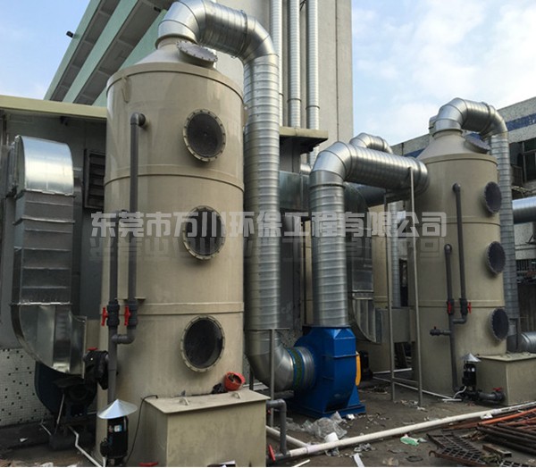 該公司專業(yè)研發(fā)及制造汽車外飾零部件,在角磨機(jī)打磨工序中,會(huì)產(chǎn)生粉塵,該粉塵屬于鐵屑的金屬粉塵、打磨的過(guò)程中伴隨火花、比重大、親水性好。鐵屑粉塵具有易氧化的特點(diǎn),氧化反應(yīng)會(huì)產(chǎn)生熱量,達(dá)到一定濃度時(shí)會(huì)發(fā)生爆炸,使用噴淋塔是最適合不過(guò)了,所以根據(jù)項(xiàng)目粉塵的物理性質(zhì)、安全方面考慮,使用噴淋塔除塵器,進(jìn)行處理,每個(gè)工作位配套打磨臺(tái)。