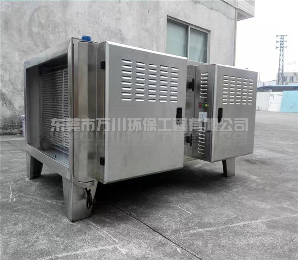 飯?zhí)糜蜔熅哂幸欢ǖ亩拘?,溫度高、有腐蝕性,長(zhǎng)期吸入對(duì)人體造成嚴(yán)重的傷害,而且還會(huì)對(duì)周邊環(huán)境造成污染,要經(jīng)過(guò)處理后才可以排放。鑒于對(duì)這類(lèi)污染物的特點(diǎn),我們采用了等離子凈化器去處理,設(shè)備使用耐腐蝕、耐高溫的不銹鋼作為設(shè)備的材料,可以延長(zhǎng)設(shè)備的壽命。通風(fēng)管也是采用了耐腐蝕耐高溫的材料制作而成的,通風(fēng)管道中間安裝過(guò)濾網(wǎng),可以在油煙進(jìn)去的時(shí)候過(guò)大顆粒的污染物。